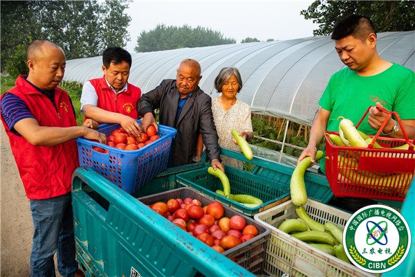 三农电视台:7月15日一清早,五河县衡台社区贫困户白善米、陆从军家蔬菜田头来了一帮穿着爱心超市制服的志愿者,他们是五河县雷锋爱心联盟会和五河绿沱电子商务有限公司扶贫户绿色农副产品线下直营店的爱心会员和员工。他们是来收购贫困户种植的蔬菜来了。