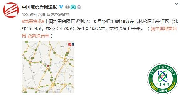 据国家地震台网消息,5月19日10时18分,在吉林松原市宁江区(北纬45.24度,东经124.78度)发生3.1级地震,震源深度10千米。