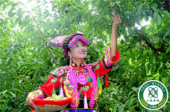 正在摘茂县李的羌族姑娘 摄影 刘斌