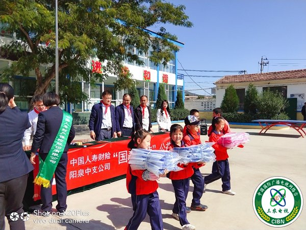捐赠仪式上,人寿财险股份有限公司阳泉中心支公司理赔/客服分中心主任王智红表示,本次公益活动是中国人寿回馈社会的爱心举措,旨在为学校的孩子们送去爱心,助力学校的教育发展,传播保险人的大爱精神。同时,他希望同学们学会感恩,传递爱心,勤奋刻苦学习、健康快乐成长,早日成为国家的栋梁、民族的英才,以优异的成绩向关心、支持教育事业社会各界人士交一份满意的答卷。