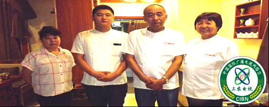 57岁的李长春(右2)和同龄妻子(右1)一起在313羊庄所属餐馆上班后,家庭生活有了保证,心情特别愉悦