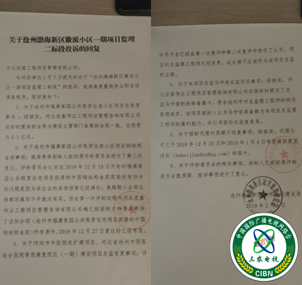 其他投标单位对河北宏基伟业工程项目管理咨询有限公司投标文件中总监综合素质及信誉业绩提出了质疑,将质疑提交到此项目业主单位沧州渤海新区新城房地产开发有限公司。并向沧州渤海新区城市规划建设局投诉。