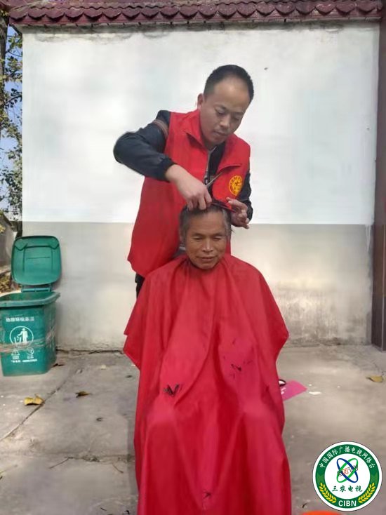 家中理发店的生意,来到杨俊新家,很娴熟地为他理起发来。一番洗理后,杨俊新看着精神多了,拉着志