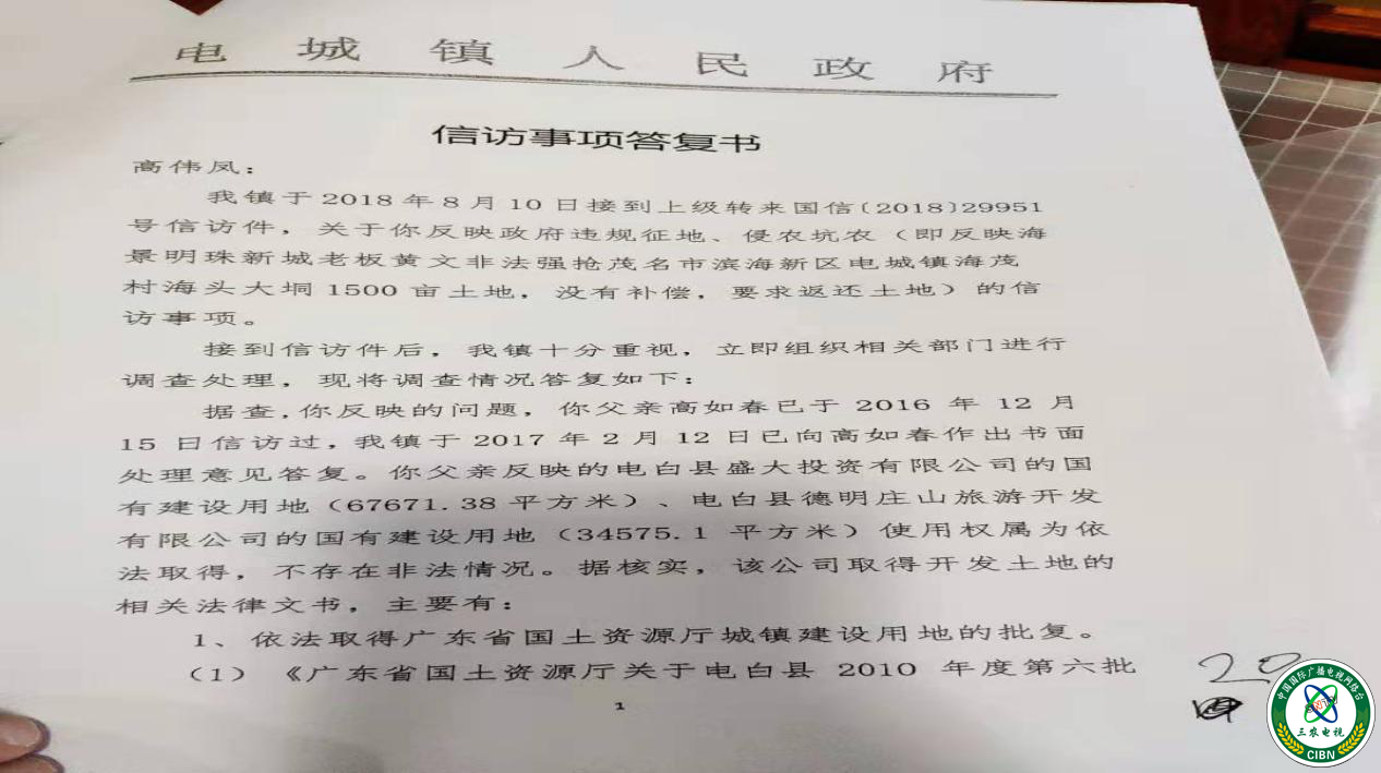 商品房地产席卷全国大地,2008年始,当地政府及房地产开发商将目光投向了这片良田,涉嫌暗箱操作分割成小块逃避有关部门监管报证,开始疯狂般侵夺、破坏,改变农田性质的行为。电城镇政府先以兴建医院、学校等公益项目为由,实施征地,并在征地过程中改变农田等类型,变为旱田、坡地、荒地等,仅以80元/平方米的价格从农民的手中征地。征地后,再通过招拍挂出让的方式出让给地产开发商电白盛大投资有限公司开发房地产,电城镇政府从中获得巨额利润,却损害农民利益,欺骗农民,损坏《土地管理法》等法规的尊严。根据《土地管理法》第三十一条的规定,国家保护耕地,严格控制耕地转为非耕地。