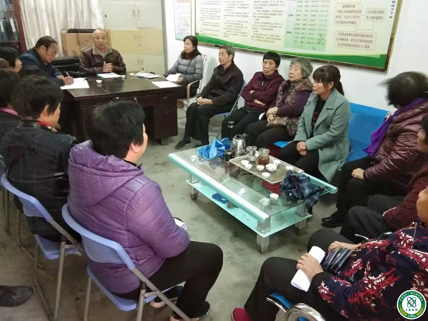 图为永春县五里街镇五里街社区老年协会会长正在进行年终工作、活动总结。