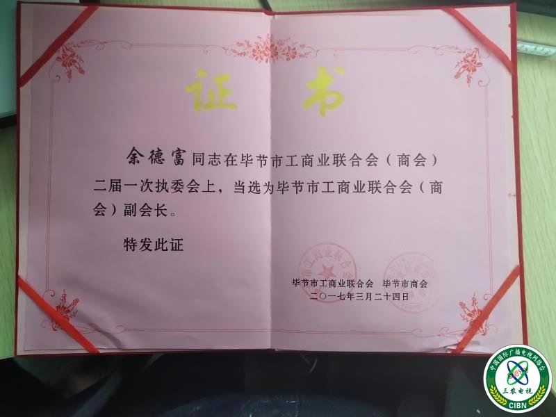 2015年任七星关区个私协会副会长,2016年任贵州省天然饮用水行业协会理事、毕节市政协委员,2017年任贵州省蒙研会毕节分会副会长。