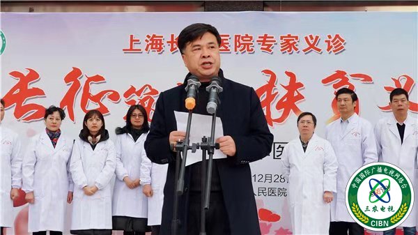 应美星随后发表讲话。他首先代表中共鄱阳县委、县政府,向上海长征医院领导和专家们此次放弃周末休息、长途奔波来鄱阳县开展义诊活动,表示热烈的欢迎和衷心的感谢。他指出,近年来,鄱阳县医疗卫生系统为全面打赢脱贫攻坚战,通过义诊加强贫困地区的联系,加大帮扶力度,为助力精准脱贫和推进“健康中国”建设发挥积极作用。今天,长征医院专家们来鄱阳为广大群众进行免费义诊活动,以精湛的技术服务患者,以无私的爱心温暖社会,充分诠释了专家们“大爱无疆”的精神。