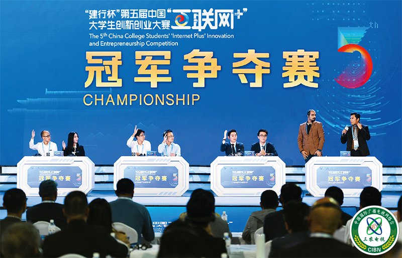 “双创”已成为时代热潮,创业带动就业的倍增效应不断显现。2019年10月14日,第五届中国“互联网+”大学生创新创业大赛冠军争夺赛在浙江杭州举行,来自清华大学、浙江大学等高校的创业者携创新创业项目展开路演角逐。图为多名创业者在互动提问。 中新社记者 王刚/摄