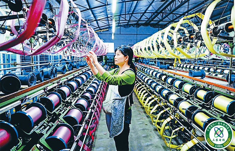 民营企业是吸纳就业的重要渠道。重庆市梁平区把发展民营企业作为促进区域经济发展、提升就业水平的重要抓手。目前梁平工业园区共有民营企业270户,吸纳失业人员、被征地农民等2万余人就地就近就业。图为重庆宏美达欣兴实业(集团)有限公司梁平分公司的纺织工人在岗位上忙碌。 中国劳动保障报供图 刘辉/摄