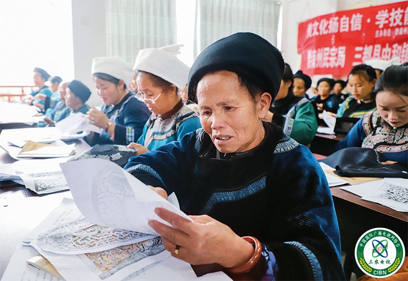 贵州省黔南布依族苗族自治州三都水族自治县中和镇红星村开办理论培训和实用技能培训“双培”课堂,促进水族同胞就业增收。图为2019年11月17日,100余名水族同胞在“传文化扬自信,学技能奔小康”“双培”课堂学习水族剪纸技艺。 中新社记者 瞿宏伦/摄