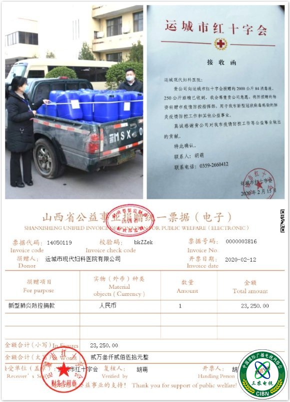 同为医护人员,山西运城现代妇科医院全体员工更是克服困难,率先行动,用他们的方式发起援助,对抗疫情。2月11日他们自发捐款,全院一百名员工,有的上班,有的在家,大家纷纷通过微信踊跃捐款,为运城市红十字会送去了募捐款23250元,同时医院还再捐赠一吨消毒液和250公斤酒精用于疫情防控工作。并通过运城市红十字会向奋战在第一线的广大医务工作者,以及所有参与疫情防控的工作人员和志愿者致以最崇高的敬意!医院全体员工用自己的实际行动践行着“人道、博爱、奉献”的红十字精神。