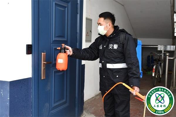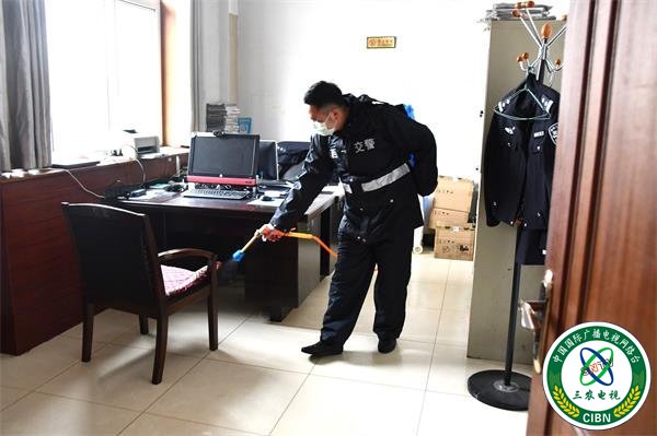 一是做好办公院内消毒工作。大队安排专人每日对院内楼道、垃圾桶、垃圾区、卫生间、门把手等处喷洒消毒液,进行全面消杀;向门卫、保洁发放防护ロ罩和手套;对进入人员严格测量体温。