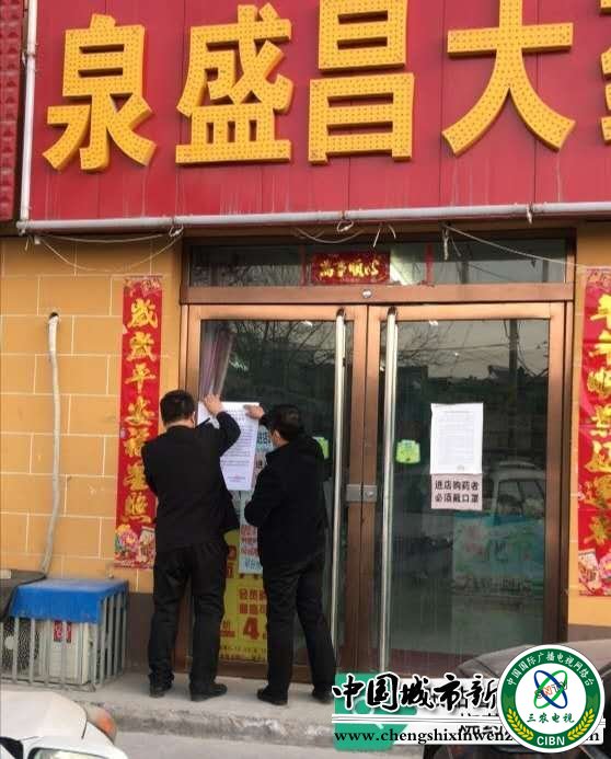 三农电视台山西讯 为进一步遏制疫情扩散,加强我市疫情防控工作,把阻断传染渠道作为疫情防控的重要环节,全力维护公众身体健康和生命安全,打赢疫情防控攻坚战。按照晋市监发【2020】52号《关于在疫情防控期间药品零售企业暂停销售退烧药品的通知》和汾阳市新冠肺炎疫情防控工作领导组《关于在疫情防控期间药品零售企业暂停销售退烧药品的通告》(第6号)文件精神和有关要求,2月20日汾阳市市场监督管理局及时做出反应,迅速出击,精准施策,全面掌握战“疫”主动权。
