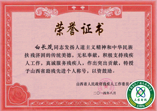 十八大以来,习近平总书记高度重视“传统文化、两岸关系、双拥工作和脱贫攻坚”,作出了一系列重要指示。为积极响应习近平总书记重要讲话指示精神,2012年3月,白长茂恢复起失传平遥古城50年的传统皮影戏演出,弘扬和传承了中华民族留传至今达2000多年的优秀传统文化;利用世界文化遗产——平遥古城的旅游平台,热情地为来自宝岛台湾的游客们免费送粽子和观看皮影戏演出,让台湾同胞真切地感受到“两岸一家亲”的暖暖情怀;每年为解放军指战员和武警官兵们组织开展传统皮影文化进军营慰问演出,丰富了军营的文化生活;连续五年助力扶贫事业,为来自全国18个省,近百名汉、回民族的矮小残疾人提供了免费培训,并解决了就业,因此,山西省人民政府授予白长茂为省内唯一残疾人获得的“山西省助残先进个人称号”。