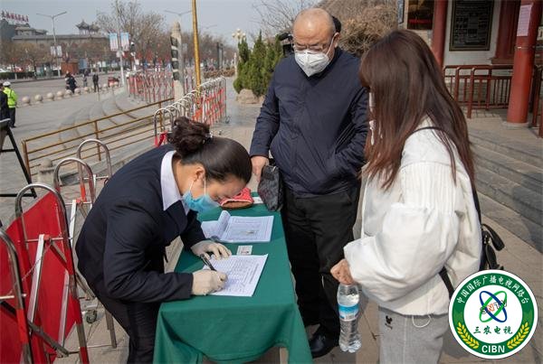 三农电视台山西讯(卫鹏)报道:“请您进入景区前,主动出示健康码、身份证,并自觉配合景区工作人员进行体温测量与登记……”3月6日一早,洪洞大槐树景区根雕大门外设置的体温检测点,工作人员正引导游客在此处测量体温、登记信息。据了解,他们都是景区的党员,景区开园第一天,他们自愿冲锋在前,两人一班定时轮岗,为游客开展志愿服务,并温馨提醒游客科学防护、文明游览。