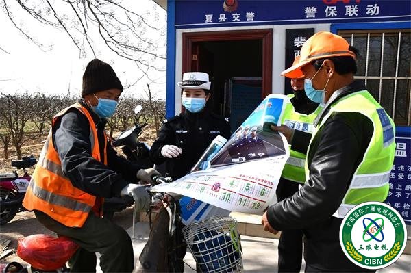 三农电视台山西讯(卫鹏 刘国飞 通讯员:李官海)报道:当前,正值新冠肺炎疫情防控的关键阶段,又恰逢复工复产春耕备耕农忙时节,为进一步做好辖区疫情防控期间交通安全管理工作,切实提高广大群众的疫情防护意识、安全意识、守法意识,3月10日,夏县公安局交通管理大队联合大吕劝导站劝导员深入农村开展疫情防控和交通安全知识宣传活动。