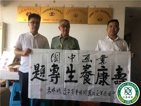 退休老干部姚卫东 为书画中国全媒体健康养生专题成立题字