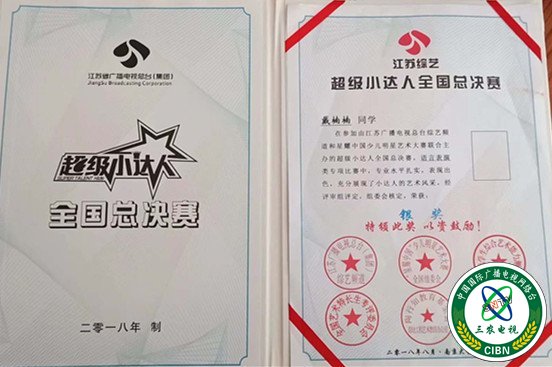 2019年7月2日江苏综艺频道超级小达人进入前十强,达人队声乐组队长。