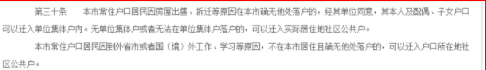 第三十条 本市常住户口居民因房屋出售、拆迁等原因在本市确无他处落户的,经其单位同意,其本人及配偶、子女户口可以迁入单位集体户内。无单位集体户或者无法在单位集体户落户的,可以迁入实际居住地社区公共户。