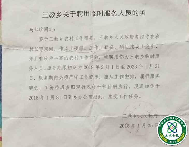 三教乡党委政府召开会议,写下了聘用人员公函,马红珍按时报到,马魁东就是不安排,拖来拖去拖得无影无踪村债缠身的马红珍于2019年1月春节前被逼无奈流浪打工至今。