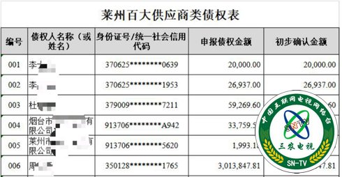 在莱州人满怀信心期盼自己的百大起死回生,重振雄威之际,百大集团却突然于2019年2月关门停业,在同年4月进入重整破产程序后,老百姓才恍然大悟,原来百大连年亏损竟高达8亿多元,其中非法集资1.8亿元,供货商未付款2.26亿元,职工工资保险0.8亿元,未消费购物卡金额0.8亿元……这不由让人倒吸一口凉气,多少个家庭和个人深受其殃!