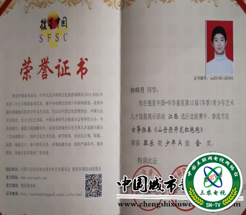钟梓月同学参加搜星中国比赛中荣获金奖