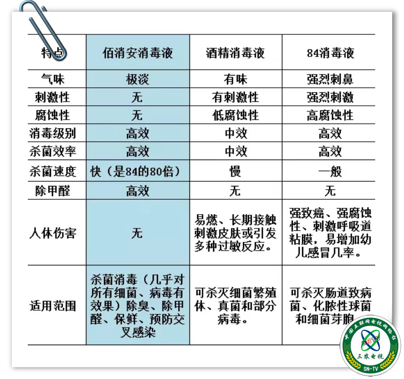我们看一下佰消安消毒液和常用消毒产品的对比:
