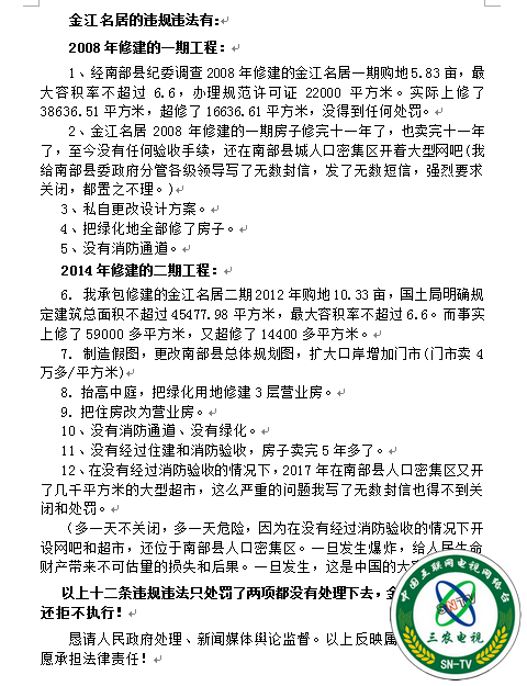 我们将持续关注四川南部县金江名居小区违规违法建设的处理情况及拖欠工程款问题!
