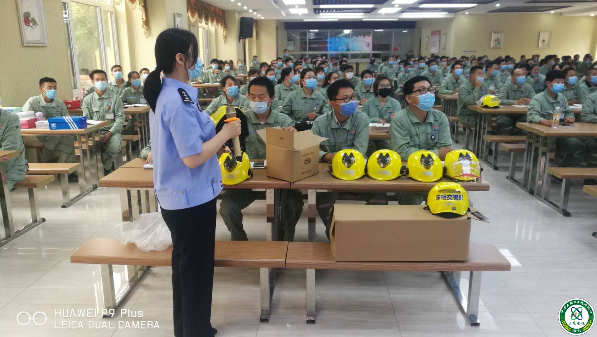 山东东明县交警给中信国安职工赠头盔送交通安全知识“大礼”