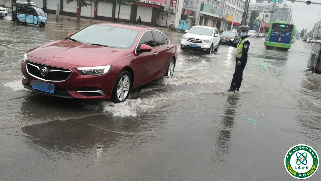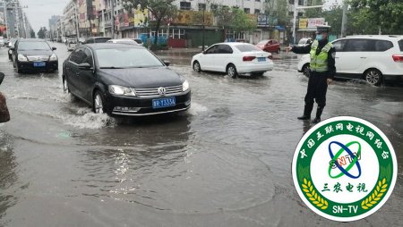 (中国三农电视台山东讯通讯员李万友报道)6月16日至17日中午,连绵不断的中雨普降在东明县境内,城区部分路段呈积水状况。城区中队20多名民警辅警,为了群众出行交通安全,依然站岗值勤于交通易堵雨水中路段疏导交通。山东省东明县公安局副局长、交警大队大队长朱卫东亲自指挥往来车辆通行,巡查辖区各主要交通路面积水、民警辅警值勤等相关情况。确保道路交通安全。受到过往行人、车辆司机们交口称赞!(文图/李万友)