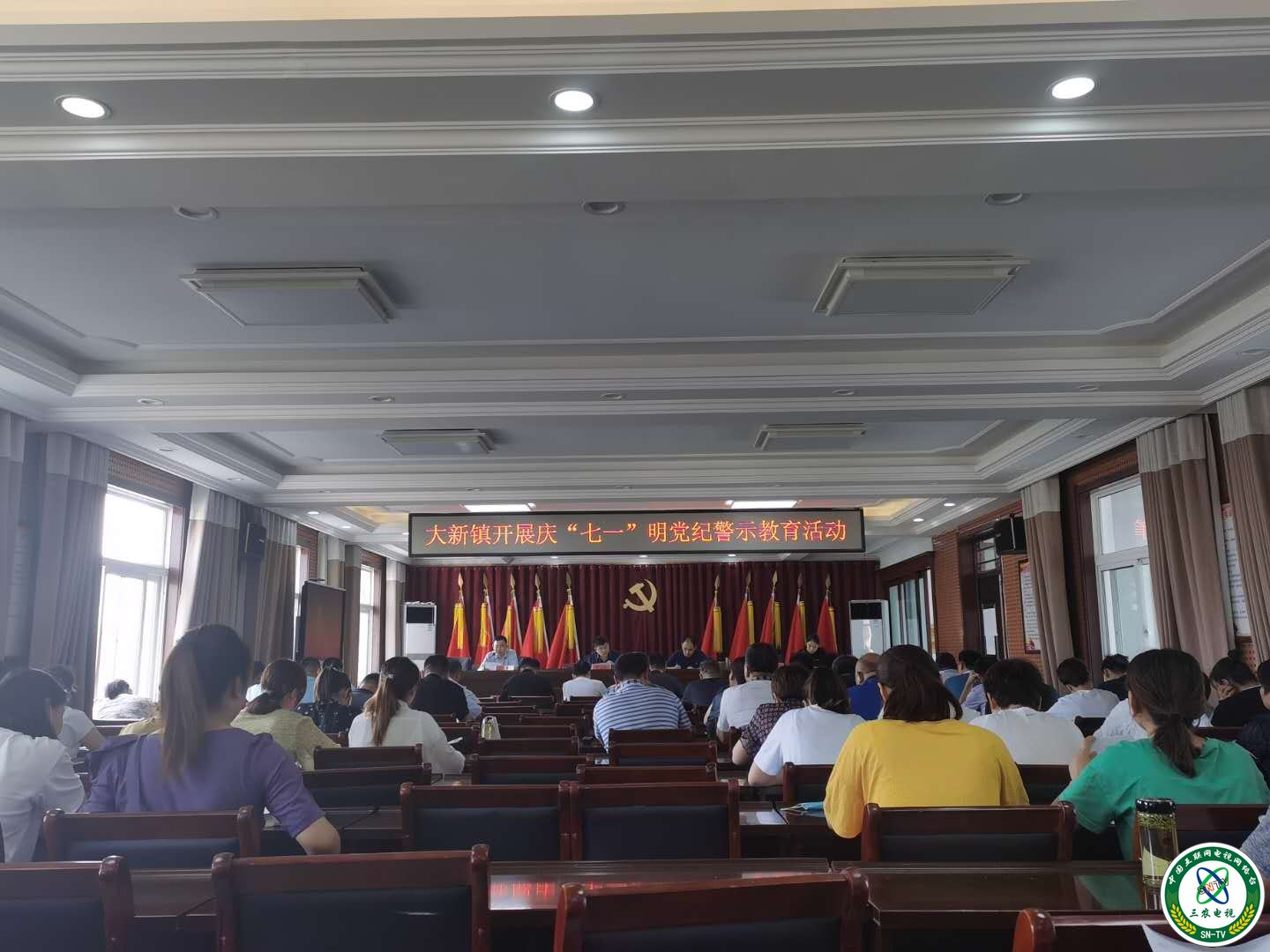 三农电视台太和讯(通讯员:陈淑娟)为庆祝中国共产党建党99周年,切实增强党员干部的自律意识,进一步激发党员干部的担当意识和责任意识,筑牢思想防线。大新镇于7月3日在镇四楼会议室召开庆“七一”、学案例、明党纪、促攻坚警示教育会,镇村全体党员干部参加会议。