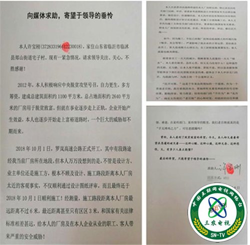 “2018年10月1日,罗岚高速公路正式开工,其中有段路途经过临沭县沭兴包装厂、临沭县葫芦园养殖专业合作社、临沭县故乡园餐饮中心三家企业,不管是设计方、业主单位还是施工方,根本不顾及设计、施工路段距离本人三家企业厂房太近的客观事实,强行近距离建设,和国家有关法律标准相差甚远,给本人的厂房及在三家企业从业的员工、客人带来严重的安全威胁。”上述三家企业的法人代表许保刚如是说。据了解,许保刚的三家企业总建筑面积约1100平方米,总占地面积约2640平方米,而罗岚高速太距离厂房最远距离不到20米,最近距离甚至只有区区5米,而且同时高速路面高于厂屋顶有1米多,存在极大安全隐患。“高速路上车辆失控冲出车道的事情不是没发生过,我们每个人都不敢去想哪天这样的事会不会发生在我们的头上!”如此近距离的高速公路,让许保刚和他的职工都不敢去想象那些可怕的场景。