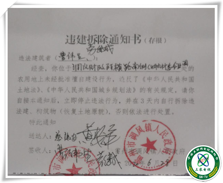 近期,记者以《雷州:某中学老师涉嫌强占耕地违规交易》为标题,曝光当地曹某某、劳某某巧取豪夺他人农用地,违规建筑的事实,引起当地多部门的高度重视。6月28日,雷州市调风镇人民政府发出《违建拆除通知》,限定曹某某、劳某某三天内自行拆除违法建筑,否则依法进行处置。