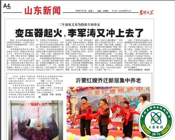2020年1月5日下午6点30分,李军涛下班后开车来到田庄老院饭店吃 饭,然后准备到父母家接孩子。晚 上7点50分,饭店老板褚宏建突然 走到正打算开车离开的李军涛车前 说:“军涛,你看,对面好食客食品厂里变压器直冒火星呀!” 李军涛顺着褚宏建手指的方向 望去,只见对面厂房变压器火星四 溅,在夜晚发出耀眼的火花。李军涛心里咯噔了一下,不好,变压器漏电失火,后果不堪设想!李军涛边想边急火火地下了车,掏出手机 向褚宏建说:“小褚,你有食品厂 电话吗?抓紧和老板联系。我抓紧报警。”两人分头行动。李军涛拨 打119火警电话,褚宏建多方查询 到了食品厂电话,并在第一时间和食品厂于老板取得了联系,但不巧的是于老板出门在外。 事不宜迟。李军涛和褚宏建一齐跑向对面厂房,绕道到达火灾现场时,已是浓烟四起火势高涨。片刻后,于老板的妻子慌里慌张地跑过来,吓得只是不停地喊着:“这怎么办呀?”李军涛安慰道:“不要慌,我已报了警,消防队一会儿就到,你家灭火器在哪里?”李军涛在于老板妻子的引领下,先去关闭了电闸,切断了电源。紧接着, 李军涛和褚宏建跑到厂房拿了两个灭火器。此时大火已经熊熊燃烧, 火势在风力助推下越烧越大,李军涛和褚宏建奋力扑救,一会儿便用完了两个灭火器,火势虽然已经减弱,但是依然有明火在不断地蔓延。李军涛和褚宏建又气喘吁吁跑到田庄老院饭店,取来褚宏建家的 两个灭火器,继续战斗。消防队赶到后,经过一个多小时努力奋战, 大火最后“咽了气”。 这时,于老板急匆匆赶回。他紧紧握着李军涛和褚宏建两人的手说:“多亏两个兄弟及时出手相助,不然后果不堪设想。你们不仅救了我家,还挽救了附近多个厂家。”这一片有十多家食品厂,如果大火蔓延,得不到及时扑救,将 会危及附近十几家食品厂的安全。 后来,经过消防队员的详细排查,确定没有安全隐患后,李军涛和褚宏建才离开。此时已是晚上9 点20分。李军涛驾车接到孩子时, 孩子早已睡着了。 目前,沂城街道为李军涛申报了2020年度沂水县见义勇为积极分子称号,县里已对此进行了复核。