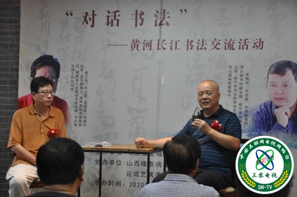 湖北咸宁市地处长江中游南部,和地处黄河金三角的运城市有诸多相似之处,为了弘扬中国传统文化,增进两市书画艺术交流,主办方书法报运城工作站特邀请著名书法家、中书协会员、湖北省书协副主席,咸宁市文联副主席,咸宁市书法家协会主席李国光先生莅临山西运城交流。著名书法家、国画家、书画评论家、资深策展人、清华美院书画高研班、湖南省六合国学书院导师、书法报运城工作站站长董江海主持并同李国光先生进行了书法深层对话现场直播。