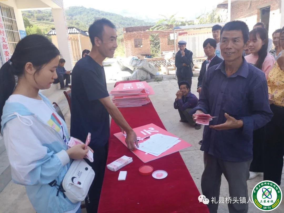 8月26日至27日,桥头镇菜花、南峪2个村分别举行2020年度到户产业扶持资金入股分红仪式。镇党政负责人、领导班子成员、驻村帮扶工作队、包村干部、村“两委”干部及贫困户参加了分红大会。