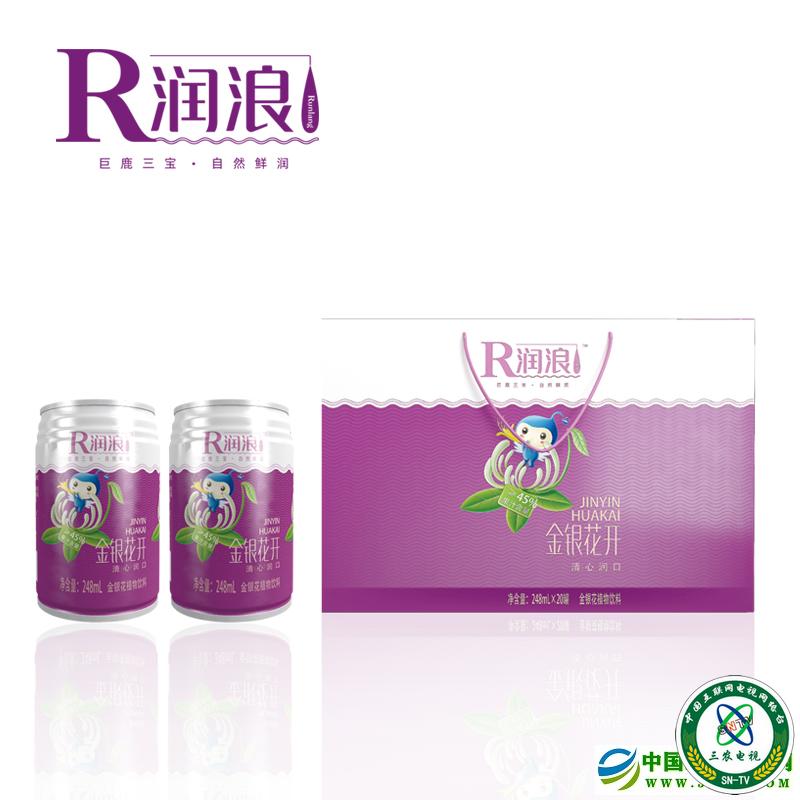 润浪·金银花开 清新润口 金银花开 润浪·金银花开--是一款金银花植物饮品;主要原料为:金银花、白砂糖、纯净水。原料--金银花自古被誉为清热解毒的良药;它性甘寒气芳香,甘寒清热而不伤胃,芳香透达又可祛邪。“中国金银花之乡”--巨鹿县,正是 “金银花开”原材料的直采地。 采用传统晾晒的金银花做原料的润浪·金银花开是您生活的小伴侣。清爽透亮的饮品原汁,全部来自金银花的萃取精华; 提鼻轻吸,渐渐传来金银花的花香;品上一口,清凉的液体直沁心脾。