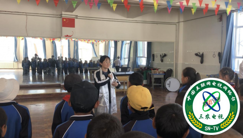 玉树市第三完全小学校长伊羊为志愿者代表介绍学校发展历史