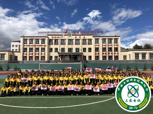 囊谦县阳光福利学校学生穿上由项目组捐赠的校服合影