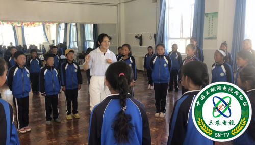 志愿者代表郭茜为囊谦县阳光福利学校学生上音乐课