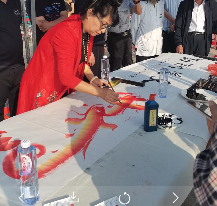 除了精彩的武术表演,书法家田振毅、史双柱,书画家高文清还现场挥毫泼墨,零距离向书法爱好者们展示精湛的创作技艺。