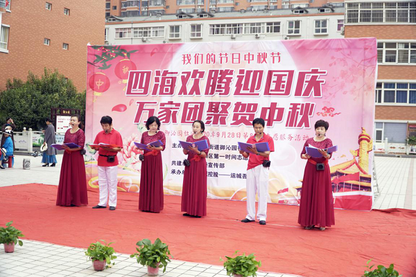 一场接一场的精彩节目使得前来观看的社区居民们笑声连连,掌声喝彩声不断。期间,社区工作人员和第一时间志愿者协会的志愿者为到场的群众送上精美的月饼和小吃。