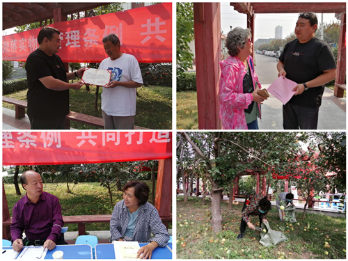三元新村院内种植了14种果树,现正值果子成熟期,掉落在地上的果子腐烂影响美观,大家开展了周末大扫除清理。居民纷纷拿起夹子、编织袋、将摔坏的果子装袋,运致垃圾桶里,将果树下地面清理干净,清洁了生活环境。