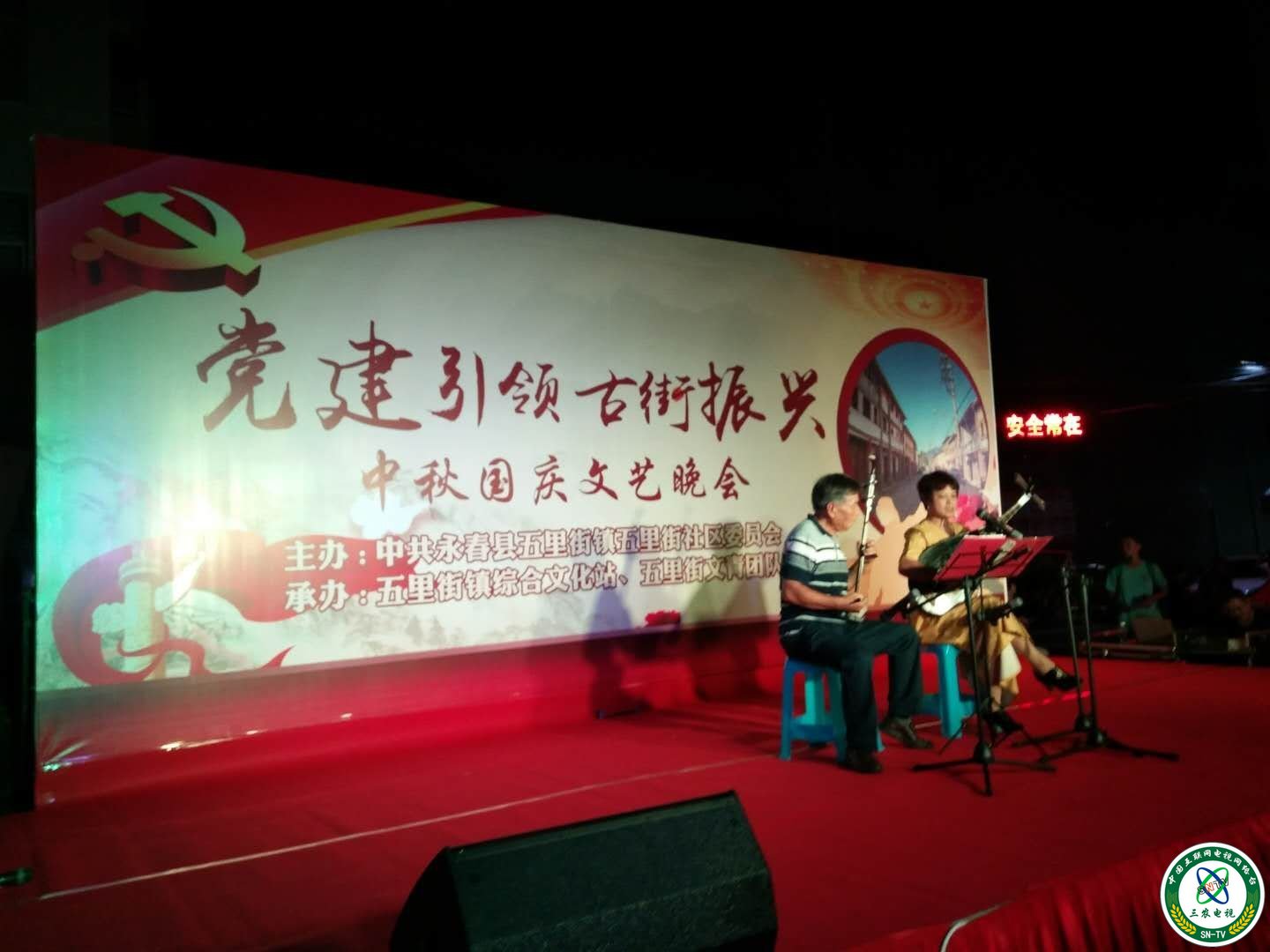 图为永春县五里街镇五里街社区老年协会、老体协的老年朋友们参加“党建引领,古街振兴”文艺晚会活动现场剪影。