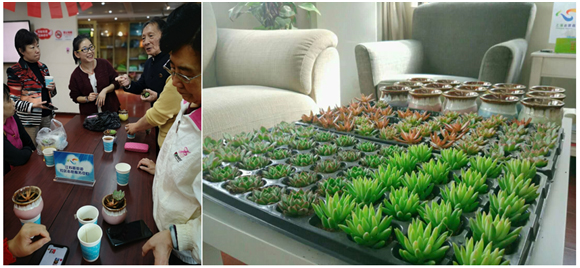本次活动中,么么直播为老人们精心准备了软糯可口的重阳糕。来自么么直播客服团队的崔海,为老人们上了一堂生动有趣的多肉植物培育课程,耐心地为大家介绍常见多肉植物品种、名称以及如何给多肉植物浇水、施肥的相关养殖技巧等,并为大家详细示范种植步骤,演示养护多肉植物。