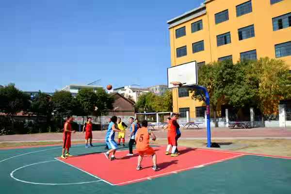 球场内,篮球赛、乒乓球赛、羽毛球赛、趣味运球、趣味投篮点燃激情,啦啦队高喊口号,把球赛推向一个又一个高潮。