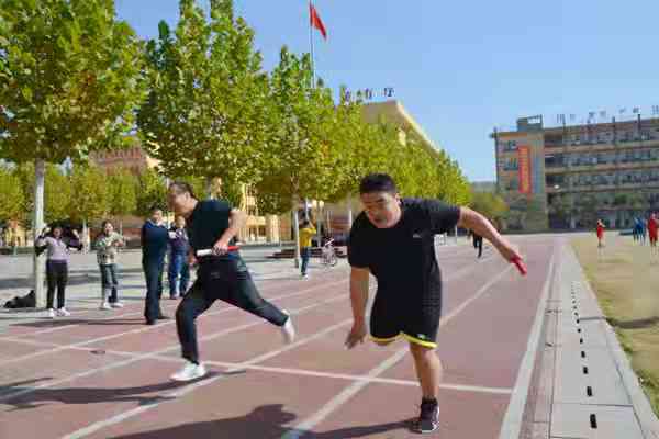 跑道上,1500米长跑、800米短跑、4×100接力先后展开,运动员争先恐后、力争冠军。文化站选手郭力印颇有拼搏精神,在4×100接力赛的最后一棒冲刺时,由于速度过快,惯性使得他一下子扑倒在地,虽然擦伤了腿和手,他仍然“轻伤不下火线”,坚持参加完报名的其他项目。