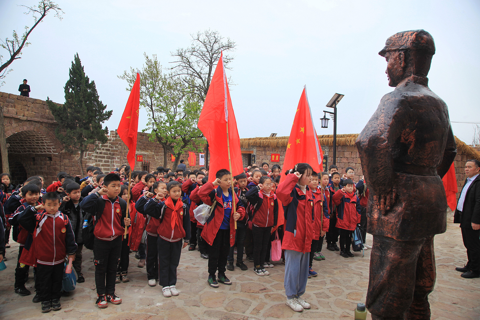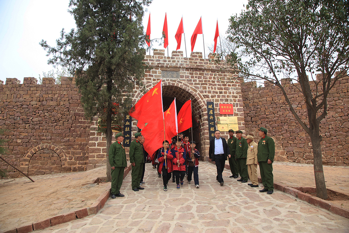 在豫西抗日纪念馆门前,很幸运的邂逅到6位保家卫国、驰骋沙场、浴血奋战、出生入死的老英雄,并与他们合影留念以表慰藉,笔者一行在烈士奋勇杀敌、誓死前冲的雕像前驻足,聆听当年那一桩桩、一件件血与火的战斗故事,个个陷入深深沉思,表示要聚焦红色教育题材的更多佳作,来缅怀为国家和民族崛起而献身的先烈们,追寻烈士悲壮的战斗事迹。