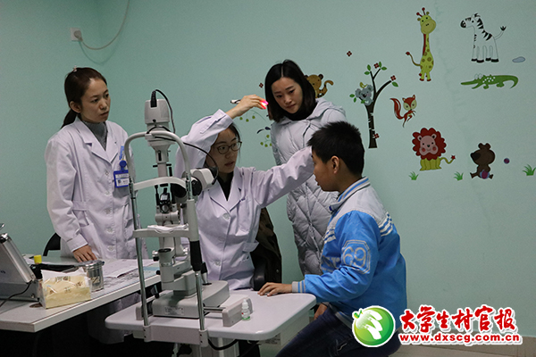 任冬琴(右二)组织医生为留守儿童检查视力。